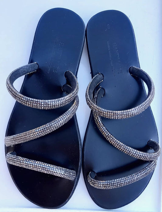 Χειροποίητα δερμάτινα σανδάλια με κρύσταλλα