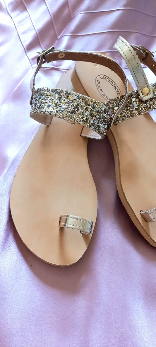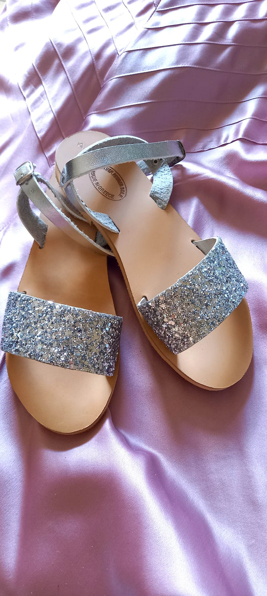 Χειροποίητα δερμάτινα παιδικά πέδιλα με glitter