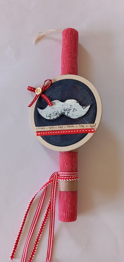 Χειροποίητη αρωματική λαμπάδα για αγόρι με καδράκι με μουστάκι