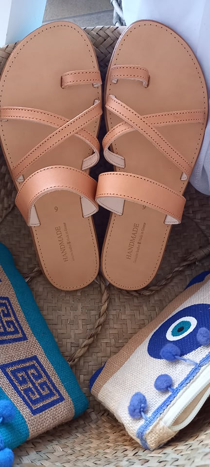 Χειροποίητα δερμάτινα σανδάλια με χιαστί λουράκια