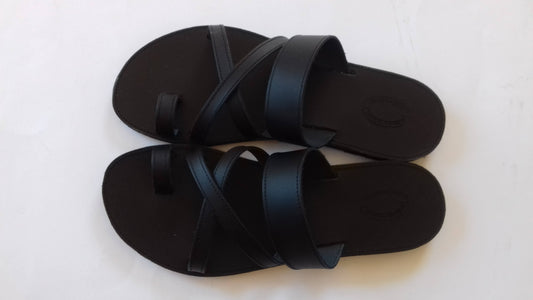 Χειροποίητα μαύρα δερμάτινα σανδάλια με χιαστί λουράκια