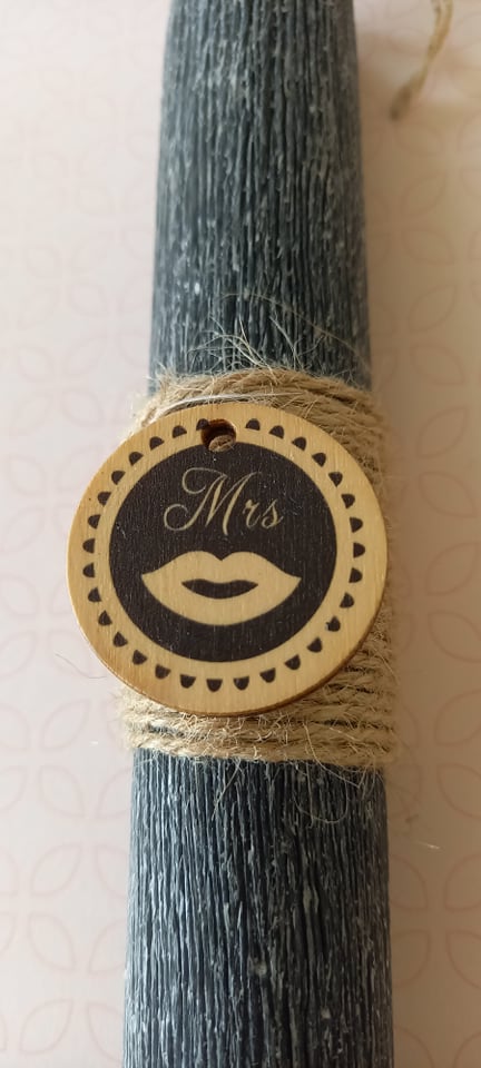 Χειροποίητη αρωματική λαμπάδα με ξύλινο στοιχείο "Mrs"