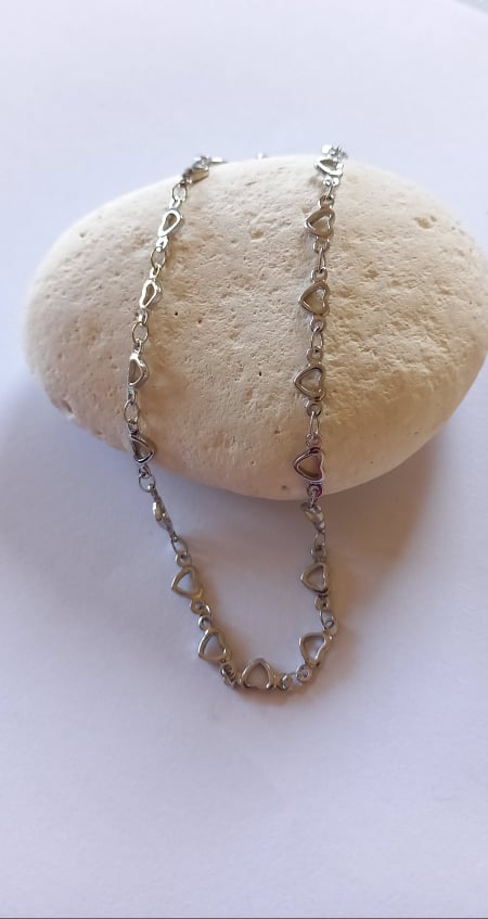 Κολιέ - αλυσίδα από ατσάλι με καρδιές