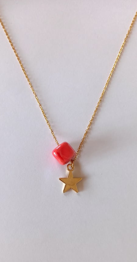 Κολιέ με αλυσίδα, κεραμικό κύβο και επιχρυσωμένο μοτίφ