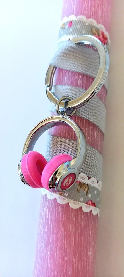 Λαμπάδα για κορίτσι με μπρελόκ και ακουστικά