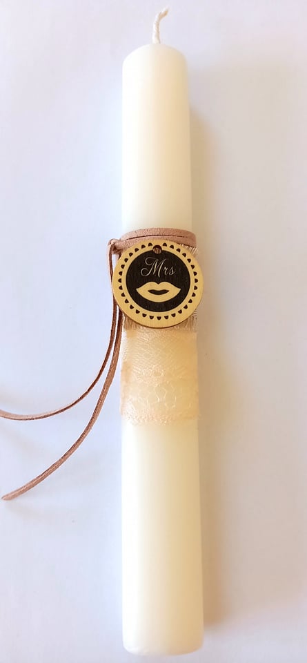 Λαμπάδα για γυναίκες με ξύλινο στοιχείο και δαντέλα
