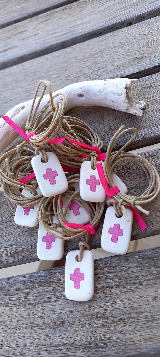Μαρτυρικό βάπτισης για το λαιμό με κορδόνι, κεραμικό κύβο και σταυρό