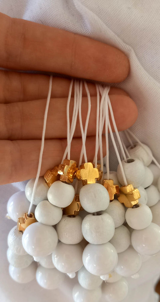 Μαρτυρικό βάπτισης μπεγλέρι με χάντρες και επιχρυσωμένο σταυρό