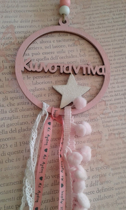 Ξύλινο διακοσμητικό με όνομα και κορδέλες
