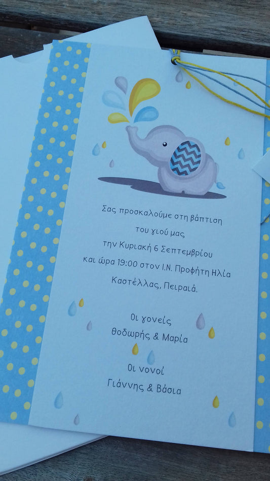 Προσκλητήριο βάπτισης με ελεφαντάκι