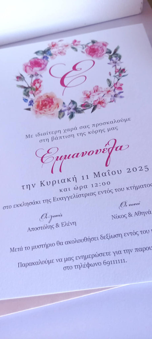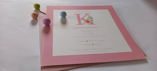 Προσκλητήριο βάπτισης με μονόγραμμα
