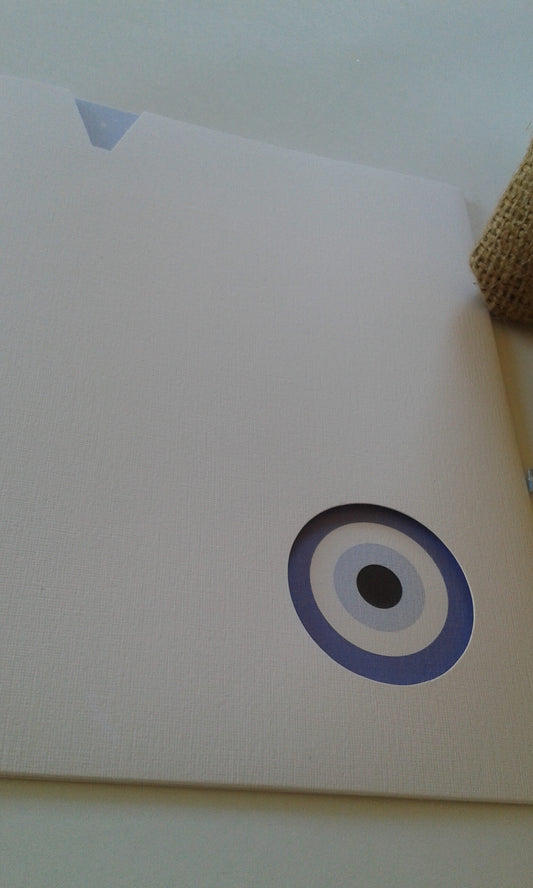 Προσκλητήριο βάπτισης με μάτι και φάκελο με κοπτικό