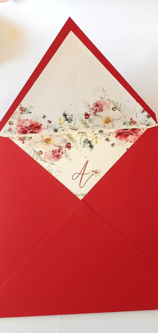 Προσκλητήριο βάπτισης με λουλούδια και μονόγραμμα