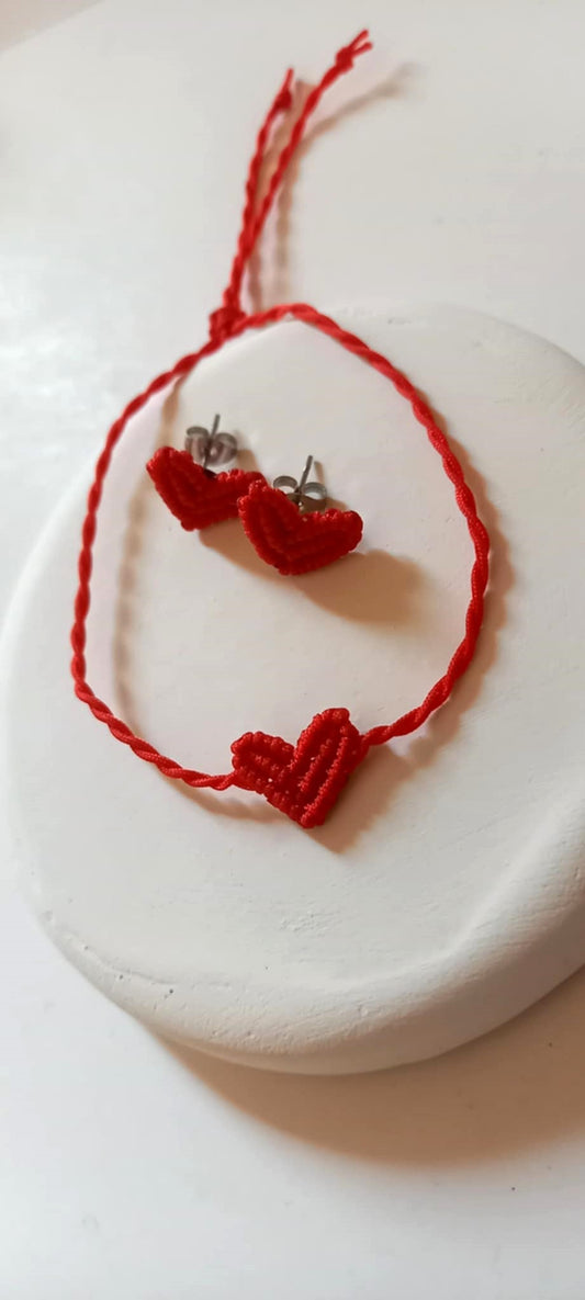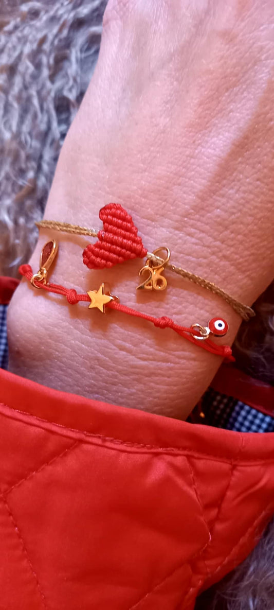 Βραχιόλι - γούρι με μακραμέ καρδιά