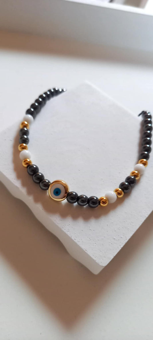 Βραχιόλι με μίνι αιματίτες και μάτι
