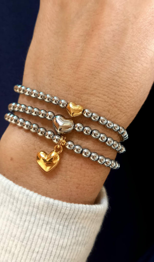Βραχιόλι με αιματίτες και καρδιά από ατσάλι