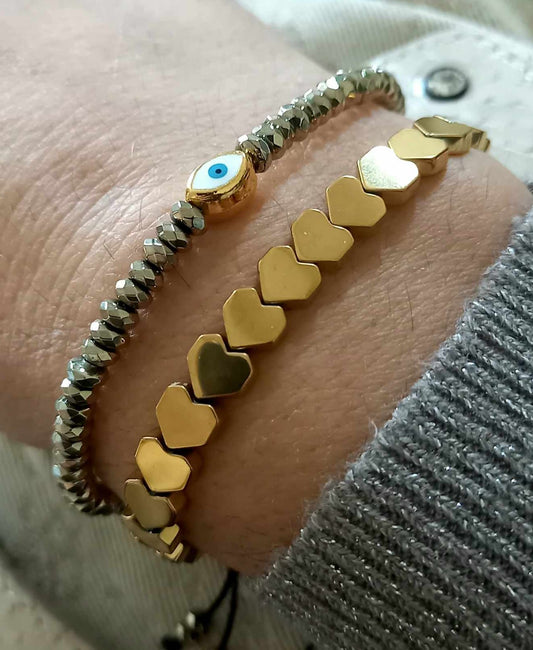 Βραχιόλι με αιματίτες και επιχρυσωμένο μάτι