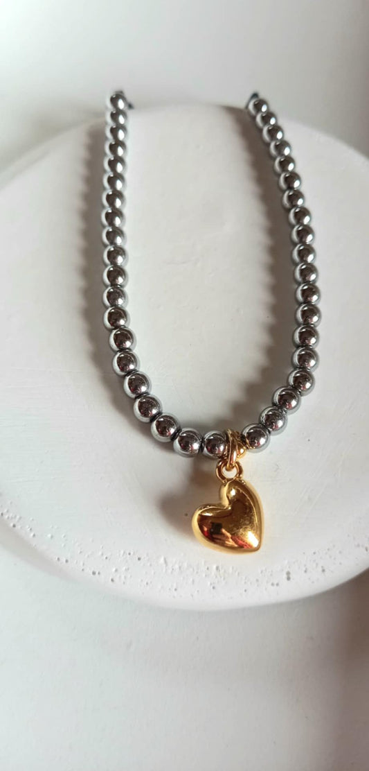 Βραχιόλι με αιματίτες και μοτίφ καρδιά