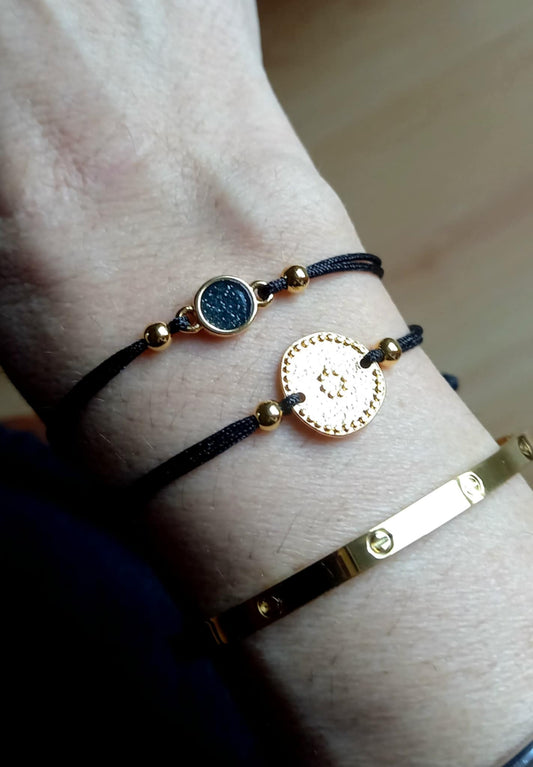Βραχιόλι με κορδόνι και επιχρυσωμένο σφυρήλατο μοτίφ