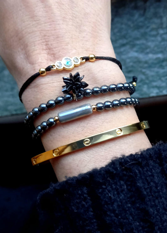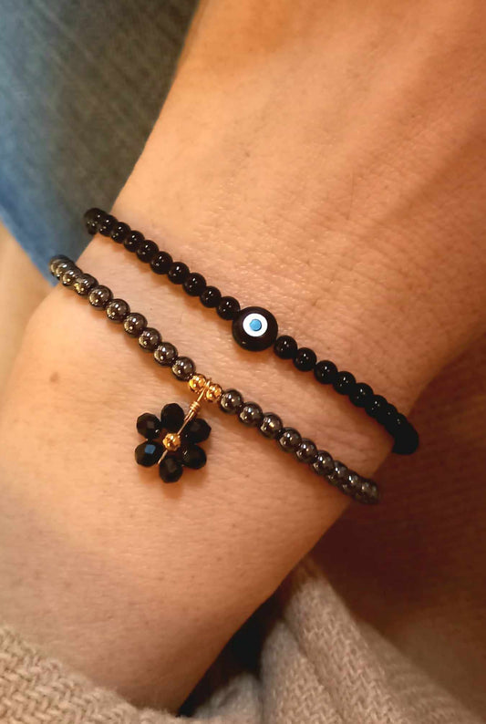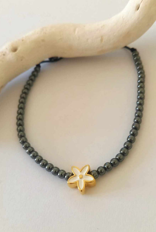 Βραχιόλι με αιματίτες και μοτίφ λουλούδι