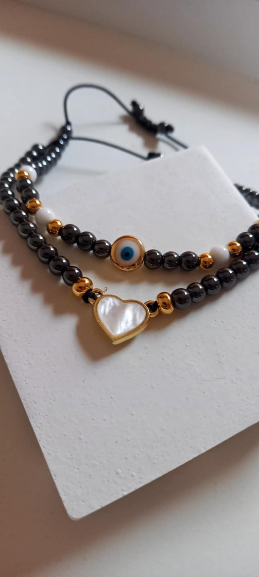 Βραχιόλι με αιματίτες και καρδιά από φίλντισι