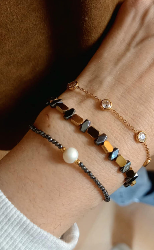 Βραχιόλι με αιματίτες και μαργαριτάρι καλλιέργειας