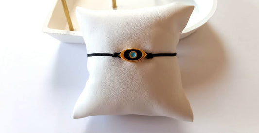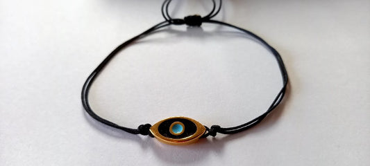 Χειροποίητο βραχιόλι με κορδόνι και μάτι με σμάλτο