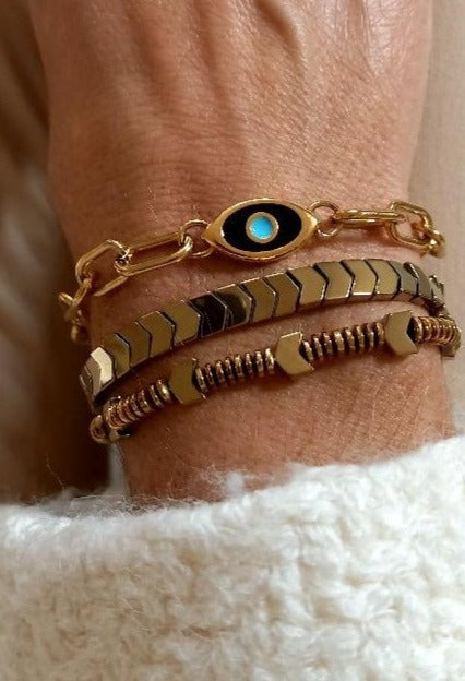 Χειροποίητο βραχιόλι με αιματίτες και επιχρυσωμένο μοτίφ με μάτι