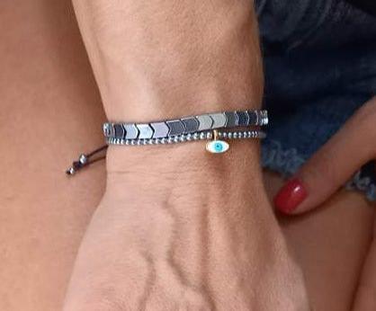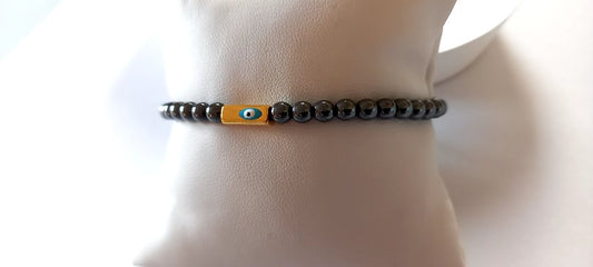 Χειροποίητο βραχιόλι με μίνι αιματίτες και μάτι με σμάλτο
