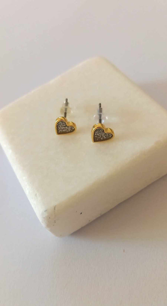 Σκουλαρίκια καρδούλες με ασημί glitter
