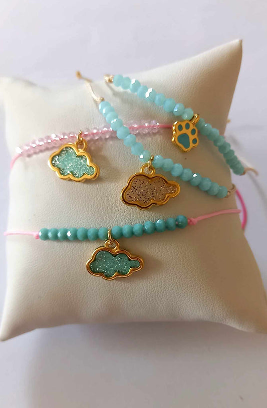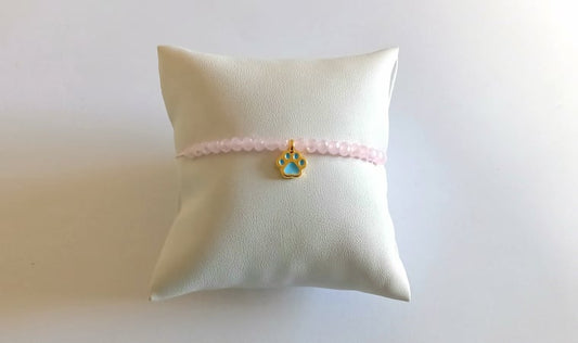 Χειροποίητο παιδικό βραχιολάκι με κρύσταλλα και μεταλλικό πατουσάκι με σμάλτο