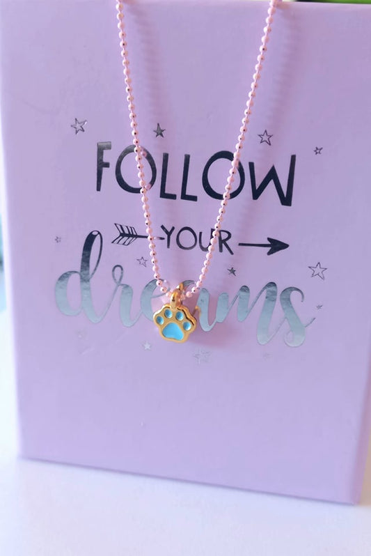 Χειροποίητο κολιέ με αλυσίδα και πατουσάκι ζώου