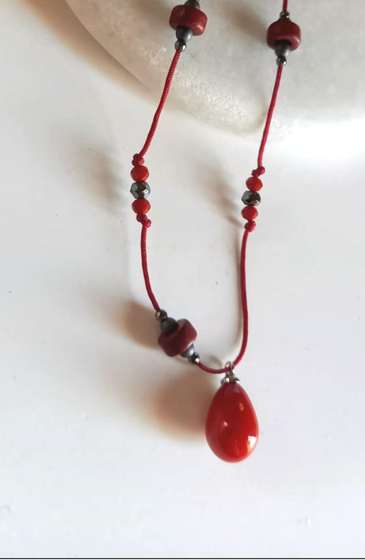 Κολιέ με κορδόνι, αιματίτες και μοτίφ