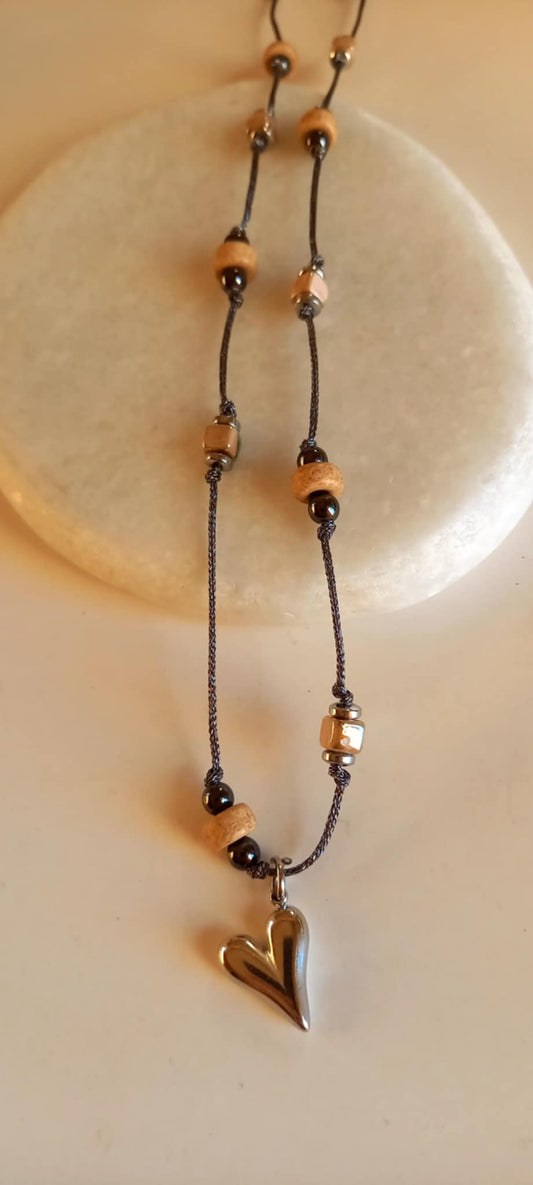 Κολιέ αλυσίδα και μοτίφ καρδιά από φίλντισι