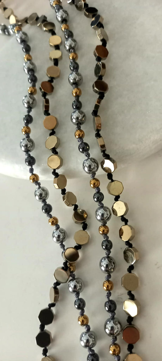 Κολιέ - ροζάριο με αιματίτες σε τριχρωμία
