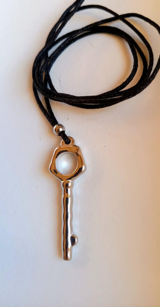 Κολιέ με κορδόνι και ατσάλινο μοτίφ κλειδί