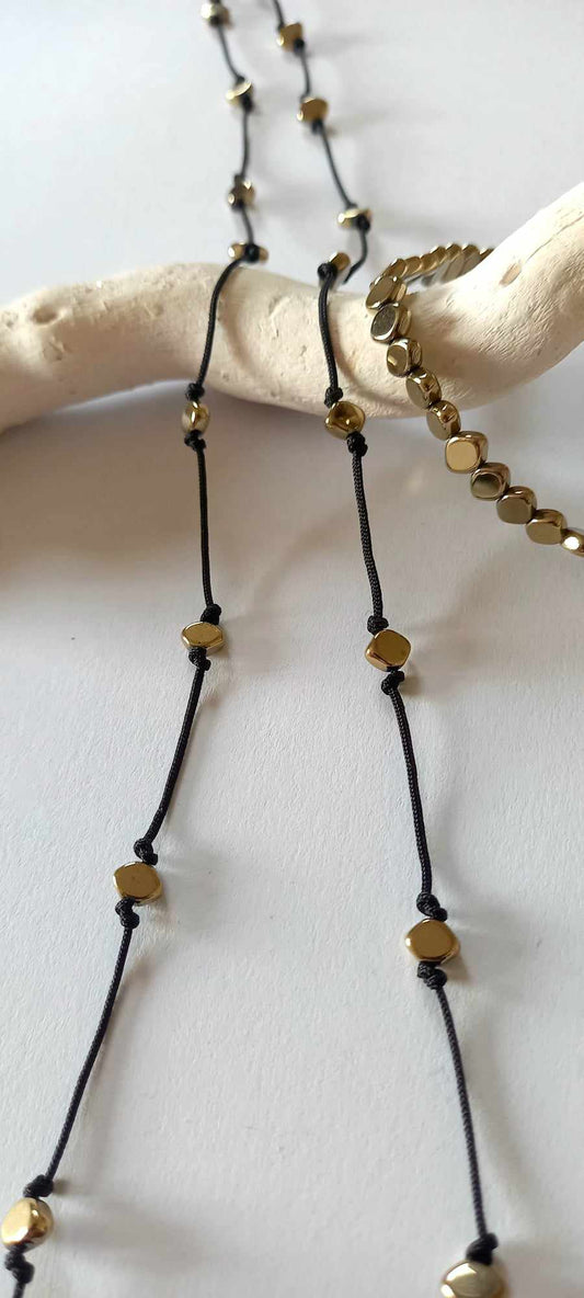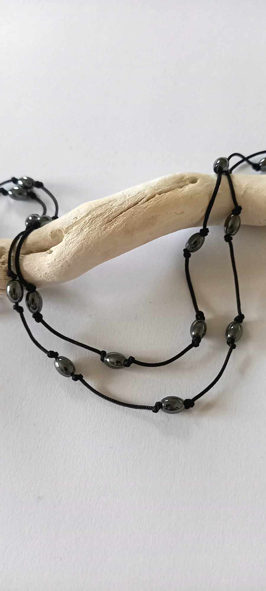 Κολιέ με κορδόνι και αιματίτες