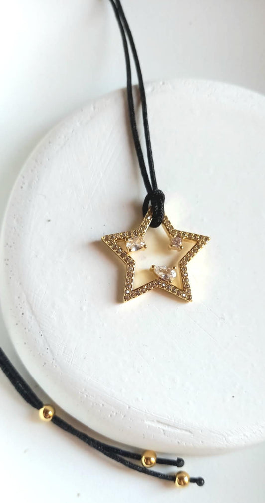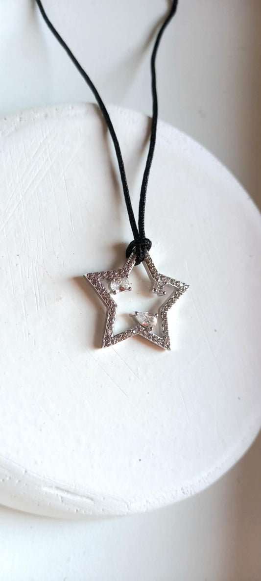 Κολιέ με κορδόνι και αστέρι με ζιργκόν