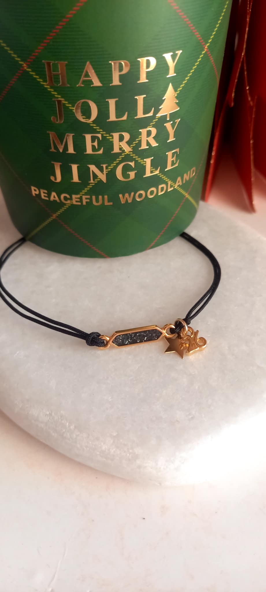 Βραχιόλι - γούρι 2026 με μαύρο κορδόνι, επιχρυσωμένο στοιχείο με glitter σμάλτο, αστέρι από ατσάλι και μοτίφ "26".