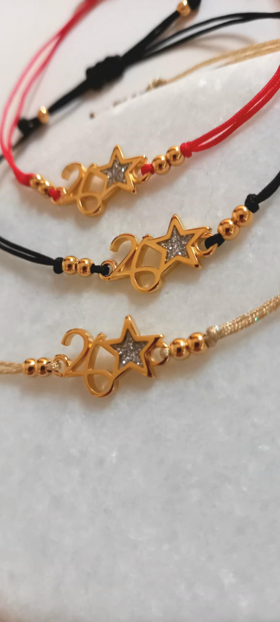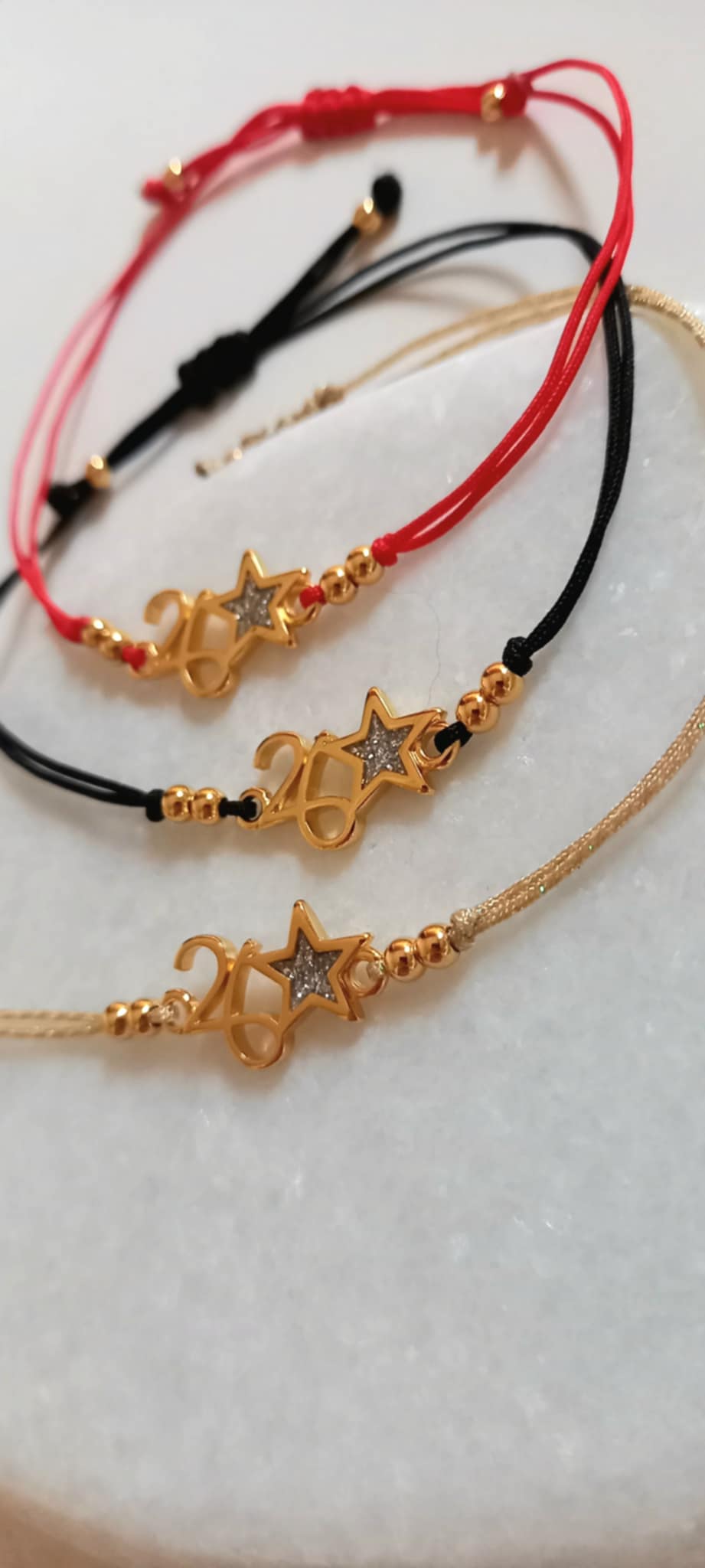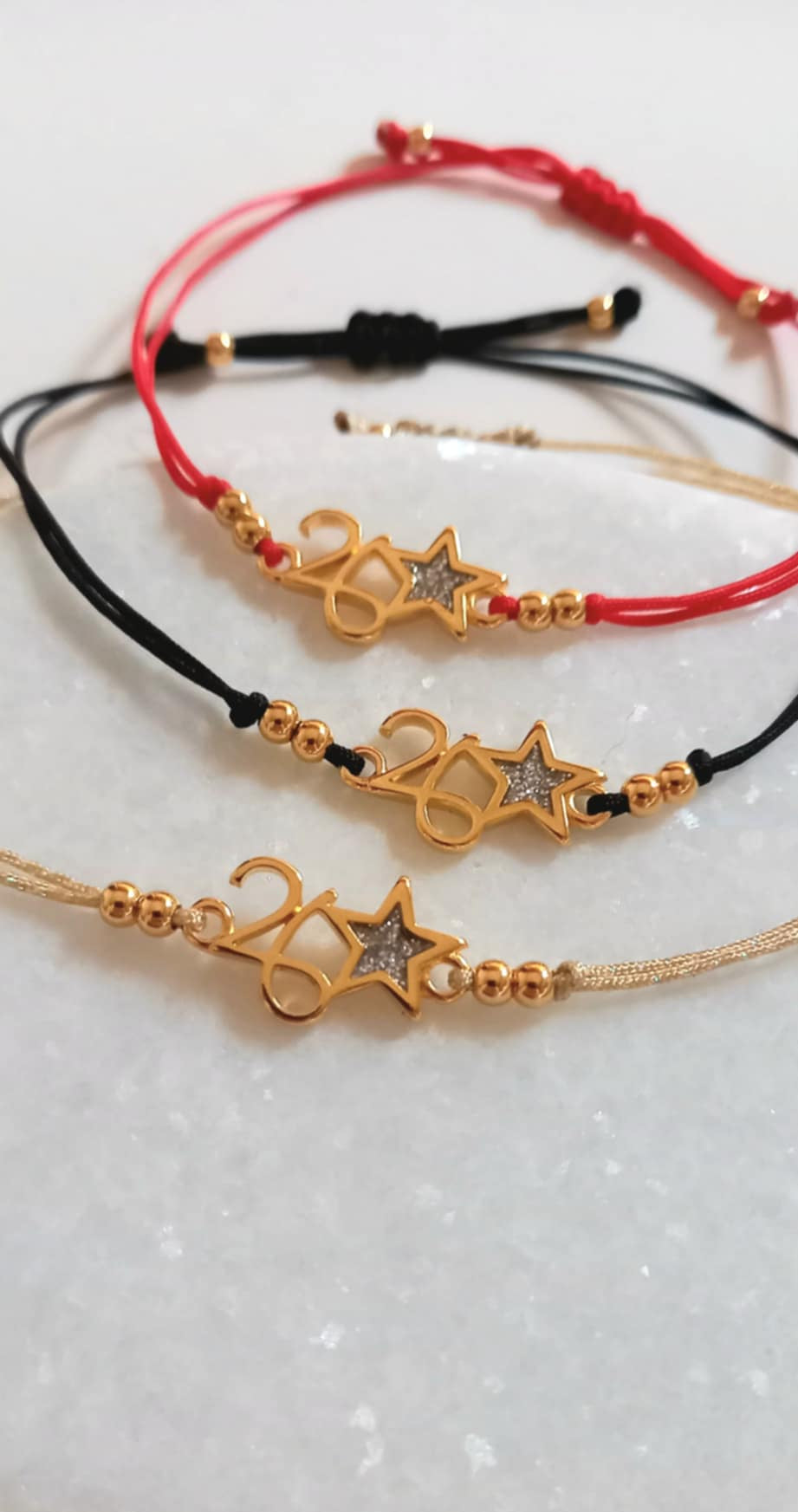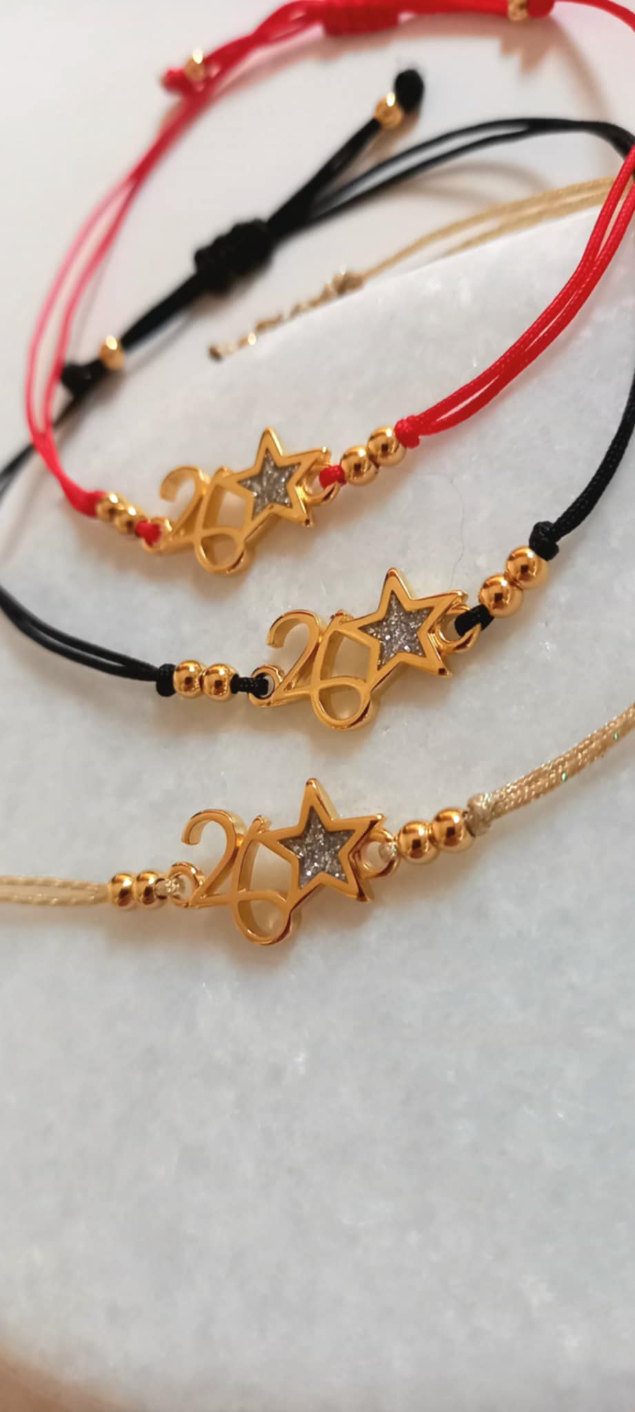 Βραχιόλι - γούρι με κορδόνι σε χρυσό, μαύρο ή κόκκινο χρώμα, επιχρυσωμένο στοιχείο "26" και χρυσές λεπτομέρειες.