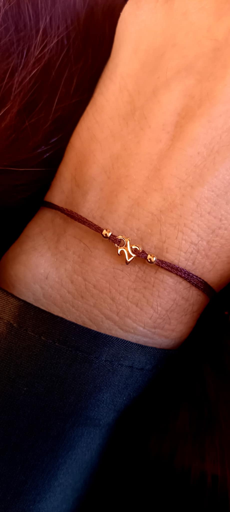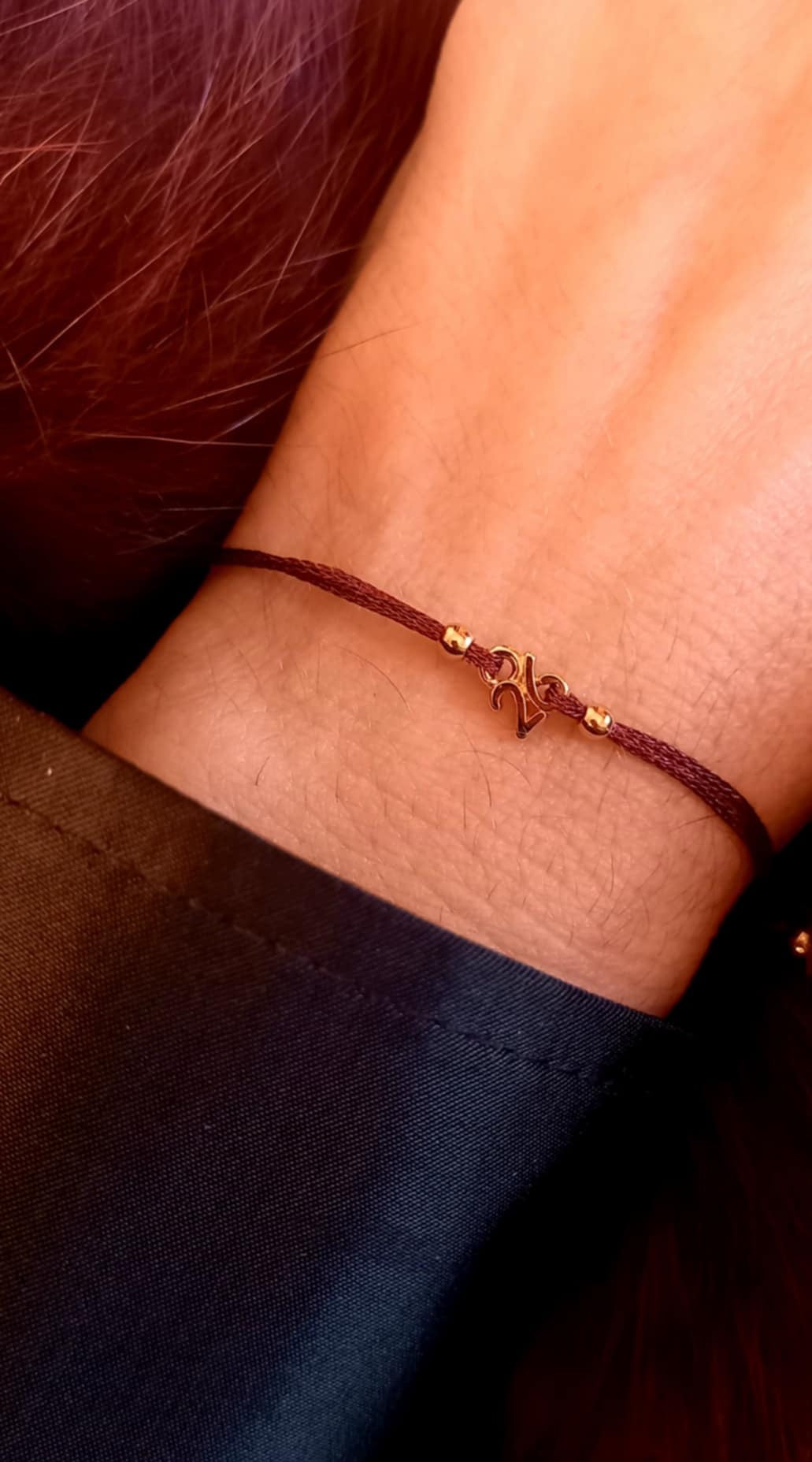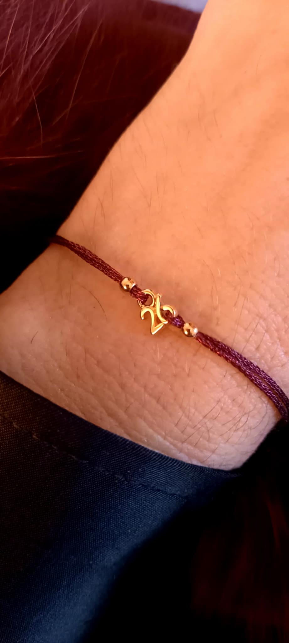 Χειροποίητο βραχιόλι - γούρι με κορδόνι σε μπορντώ μεταλλικό χρώμα και επιχρυσωμένο στοιχείο "26".