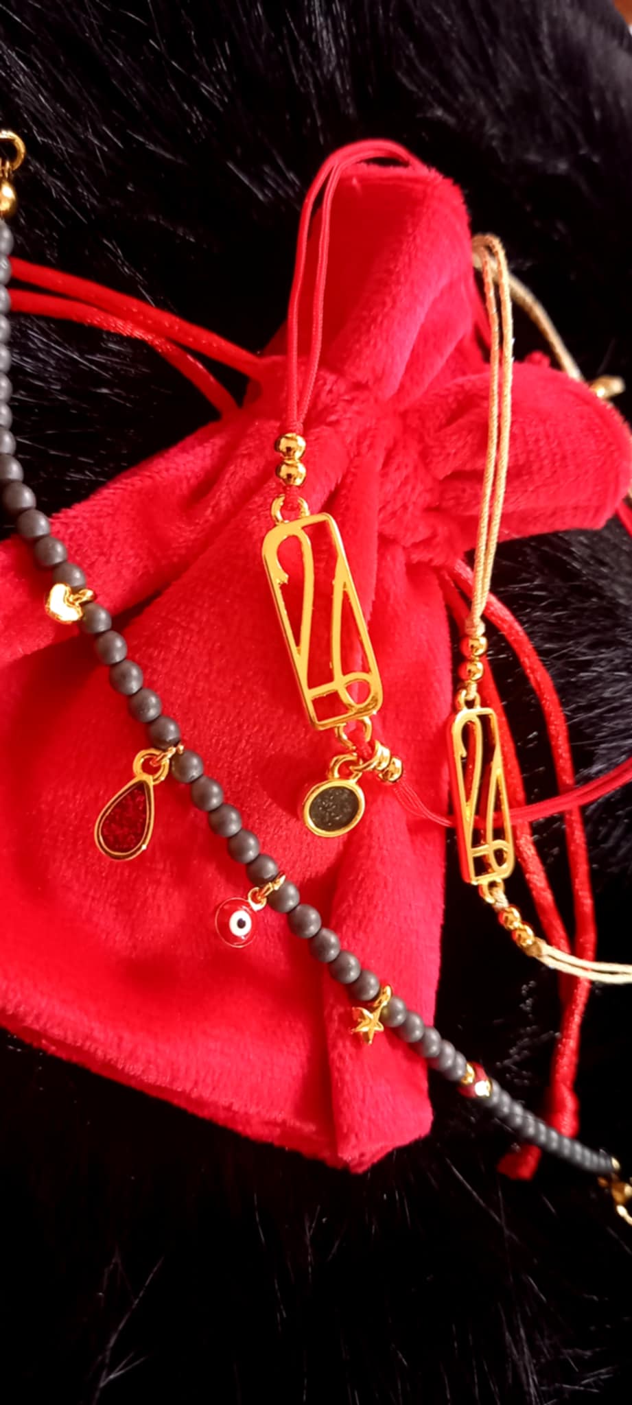 Βραχιόλι - γούρι 2026 με κορδόνι σε λαμπερό κόκκινο χρώμα, επιχρυσωμένο στοιχείο "26", επιχρυσωμένο μοτίφ με glitter σμάλτο και χρυσές λεπτομέρειες.
