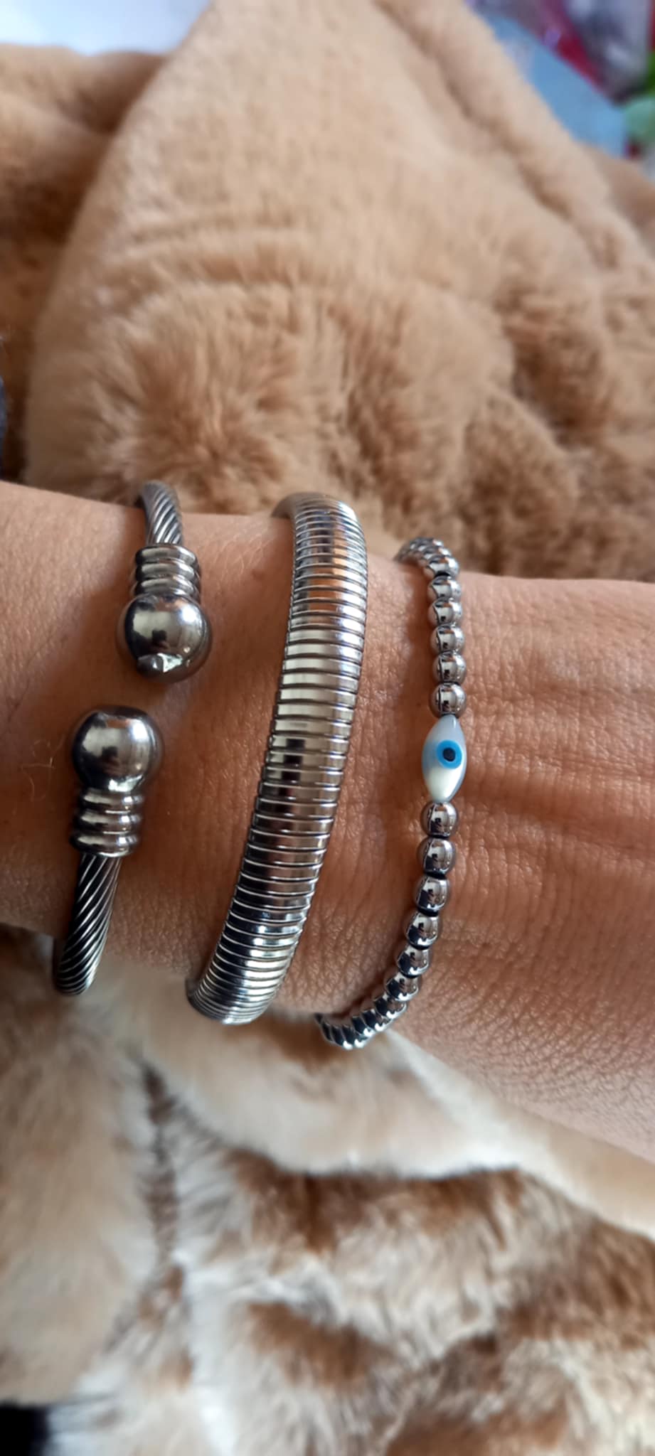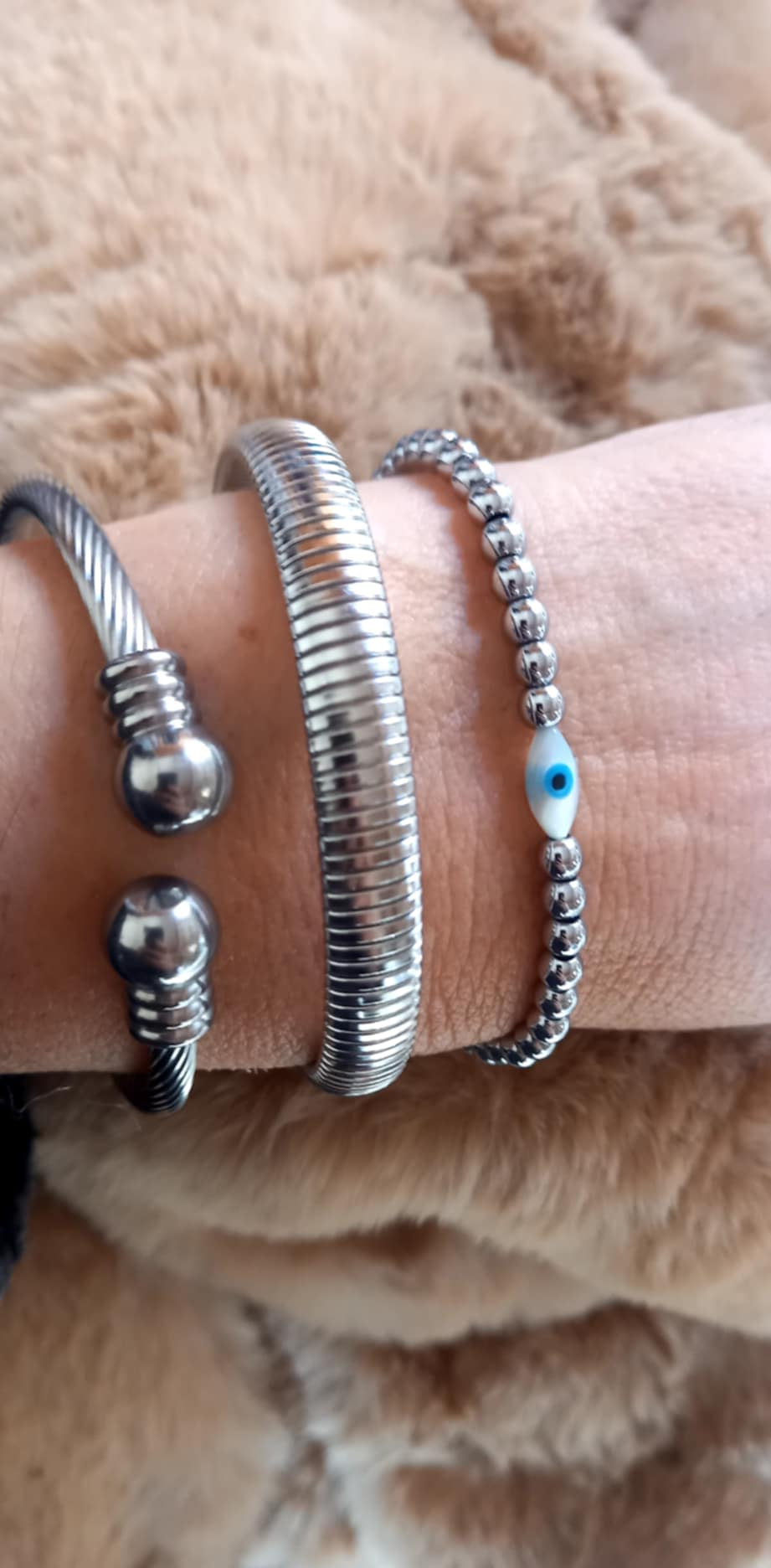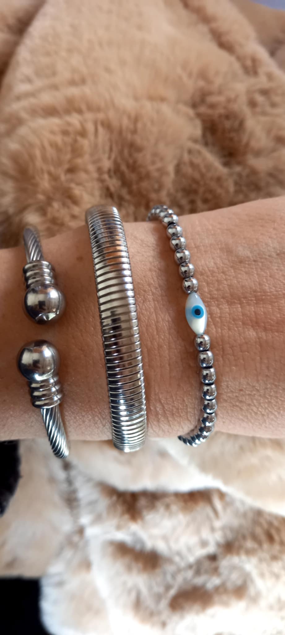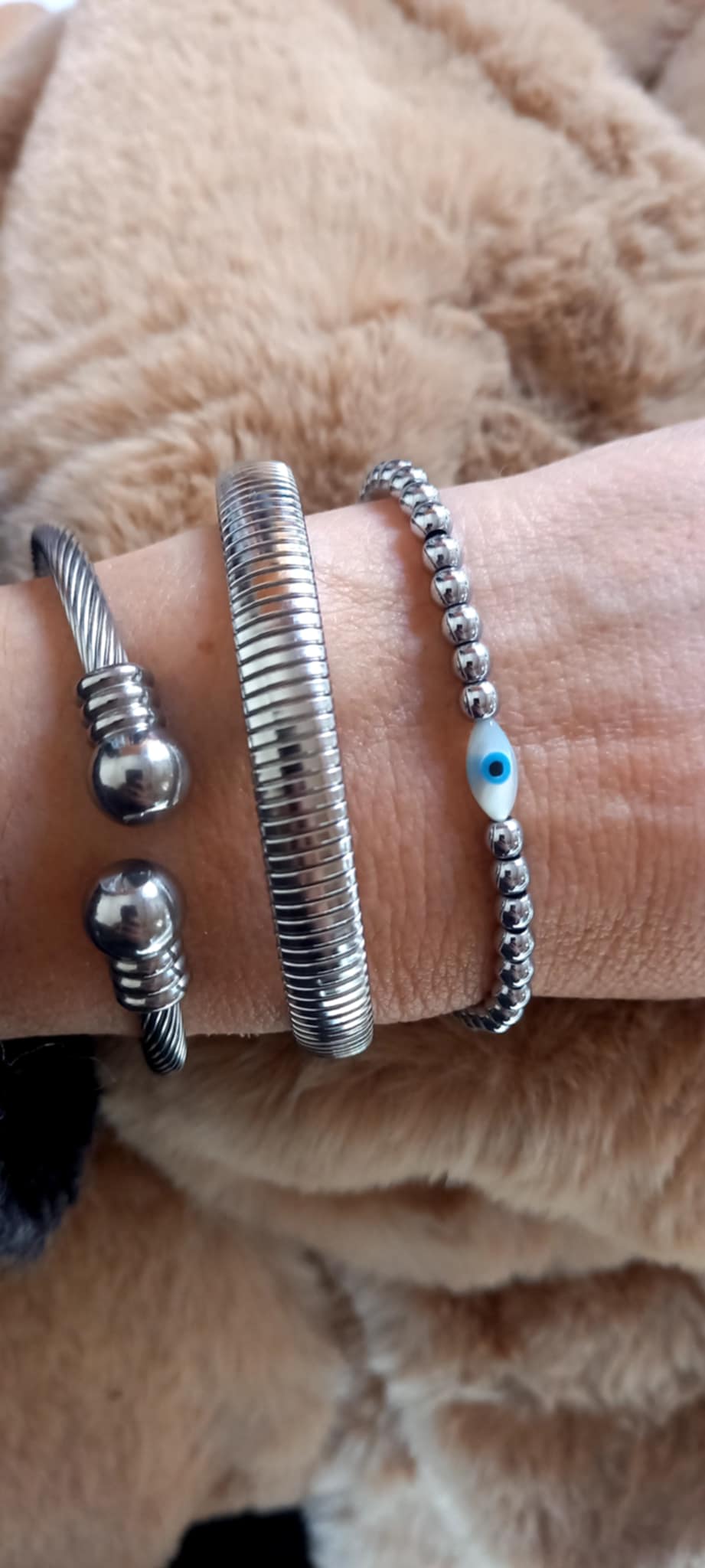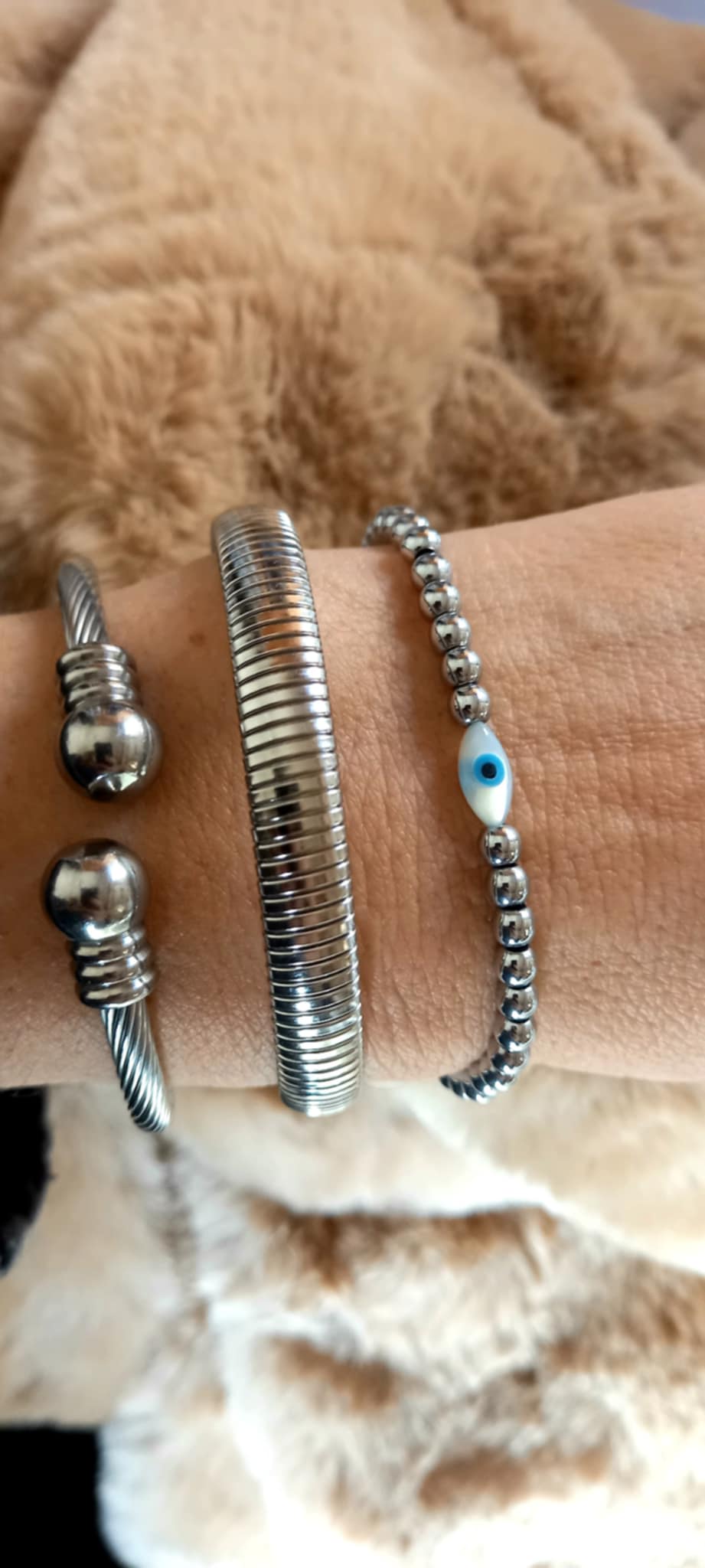 Κομψό βραχιόλι με ασημί αιματίτες και μάτι από φίλντισι.