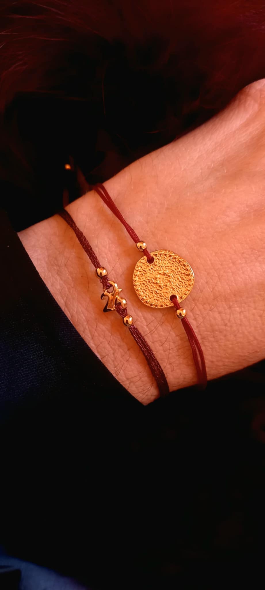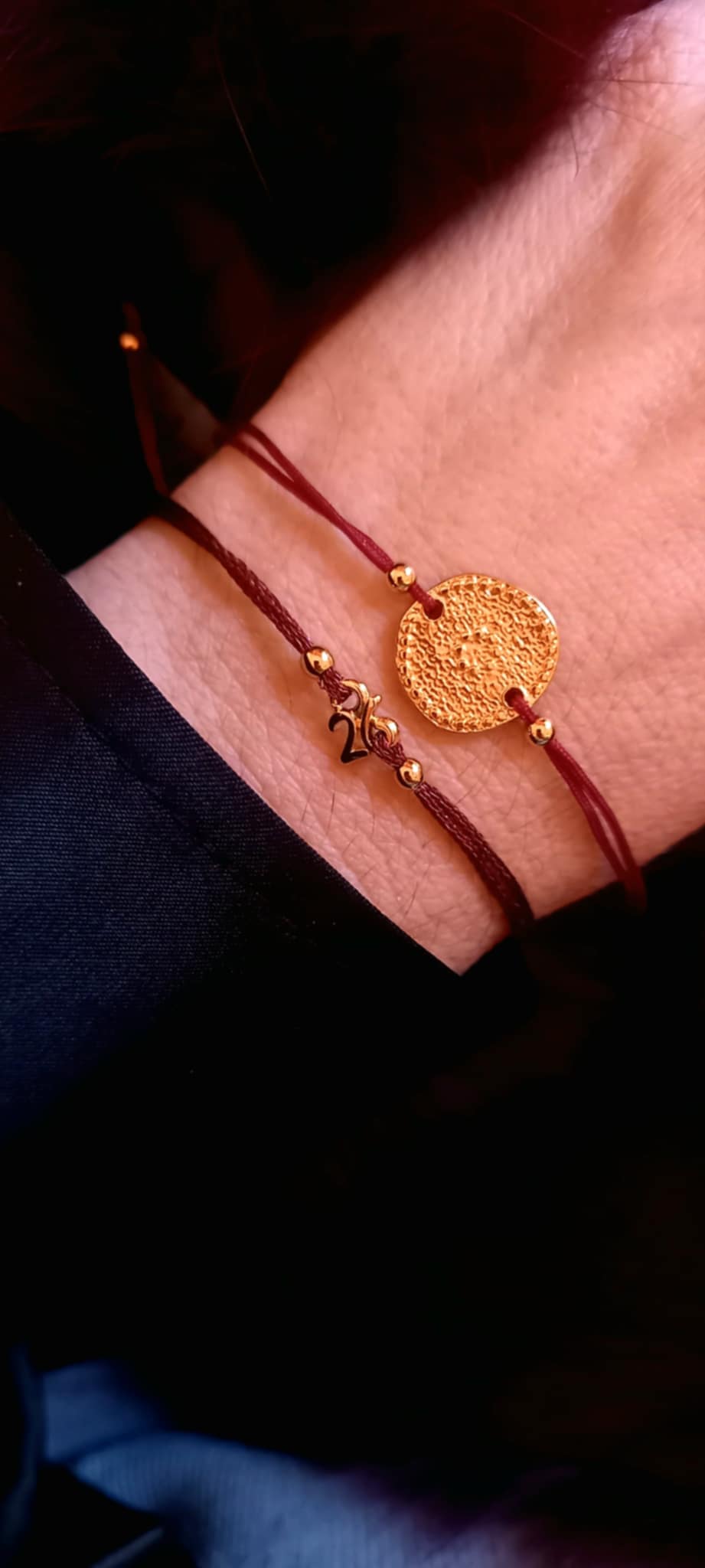 Βραχιόλι με κορδόνι και επιχρυσωμένο σφυρήλατο μοτίφ