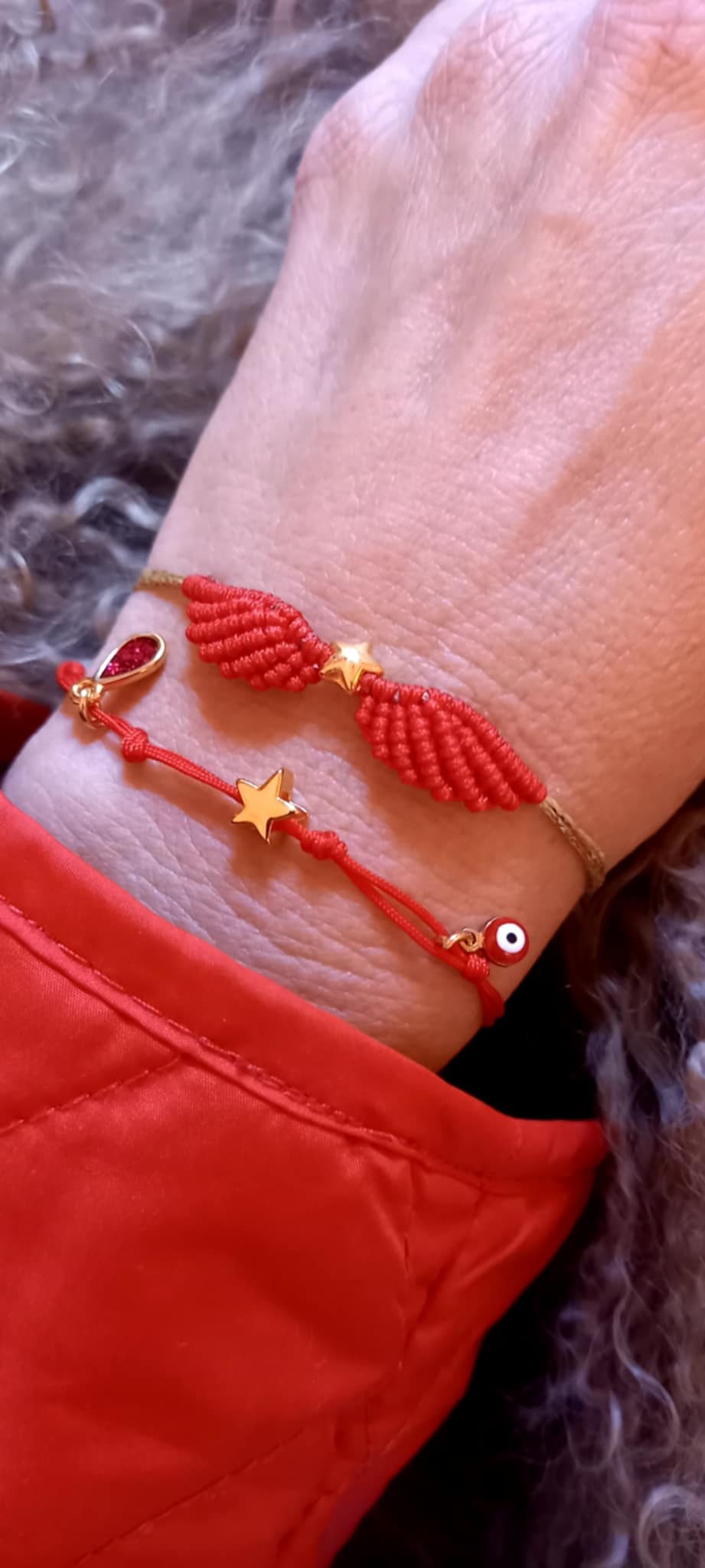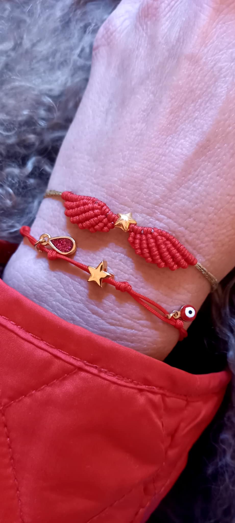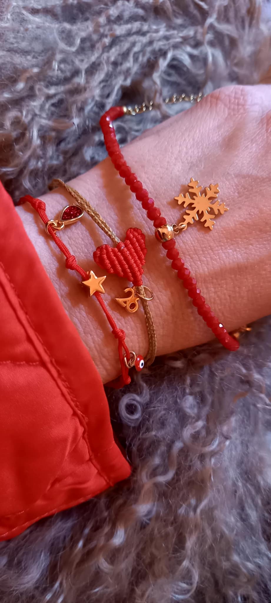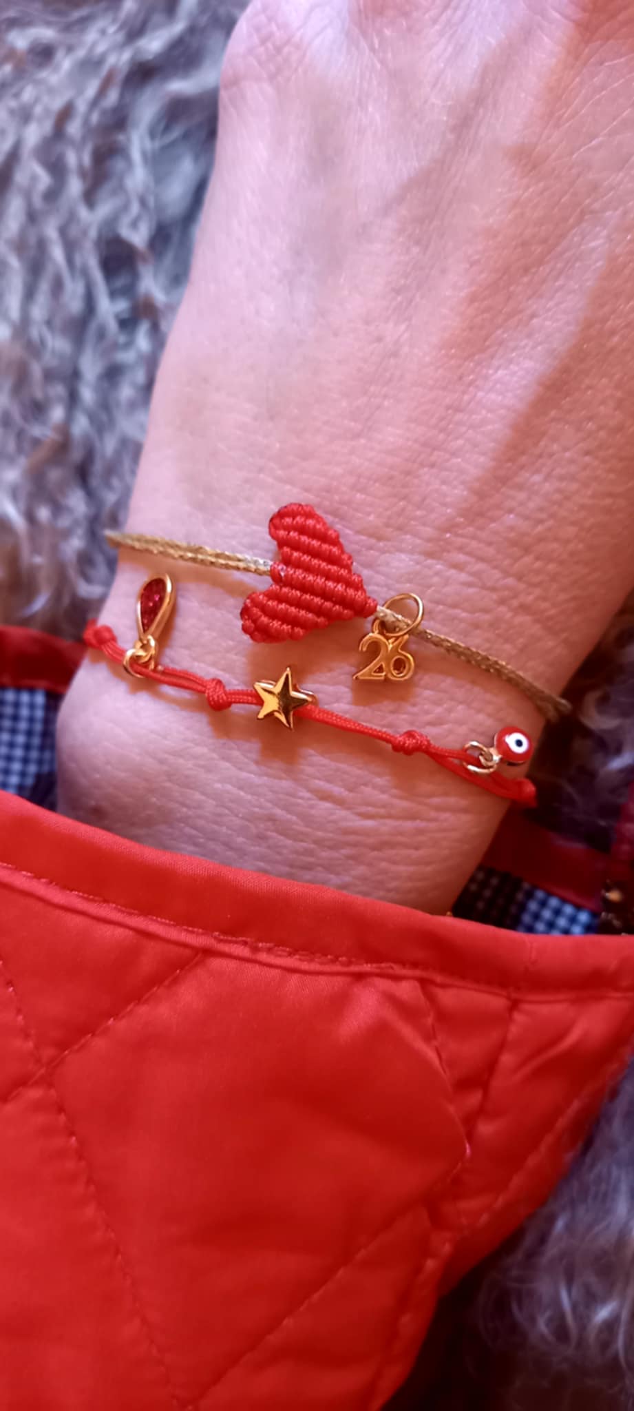 Βραχιόλι με κορδόνι σε κόκκινο χρώμα και κρεμαστά μοτίφ.