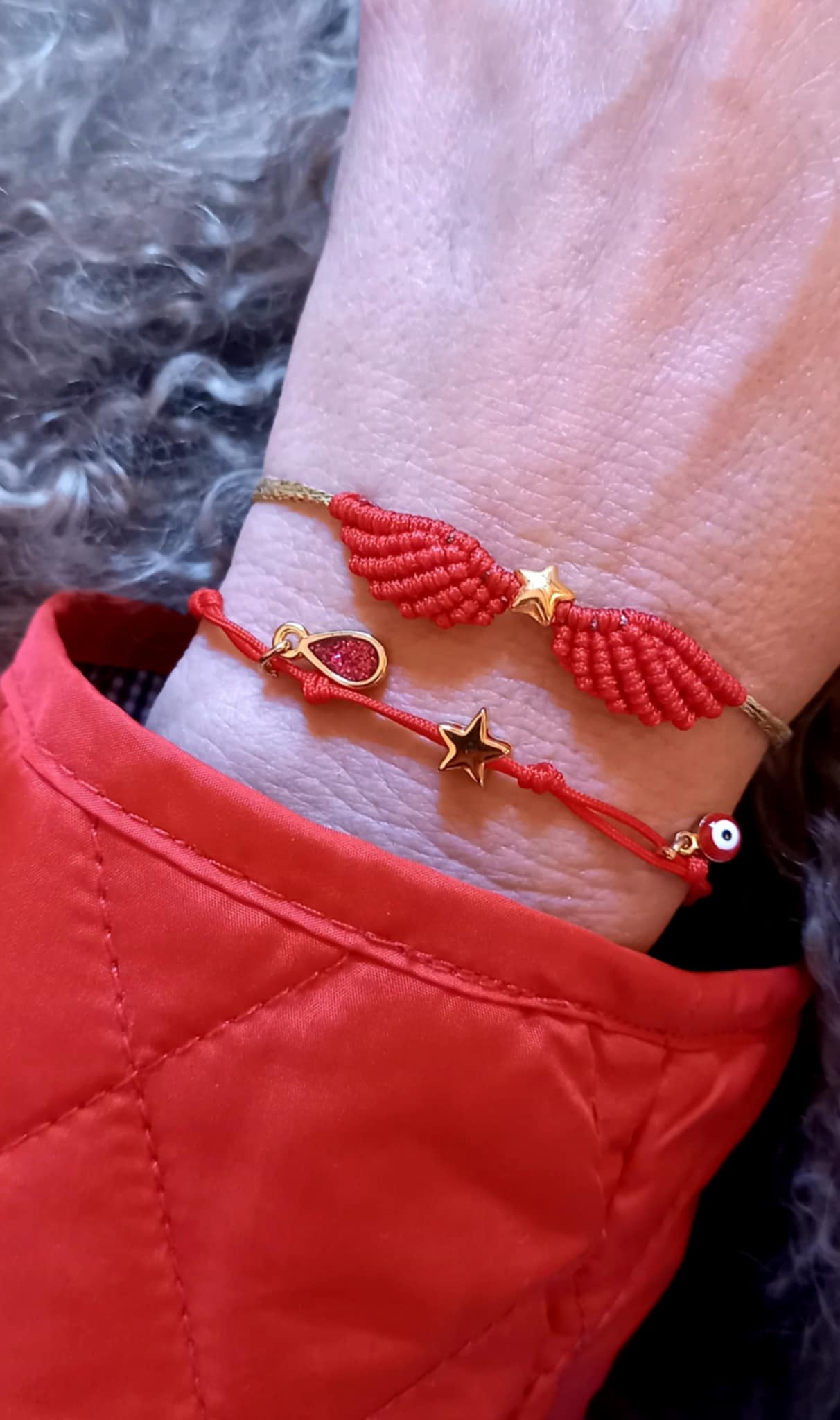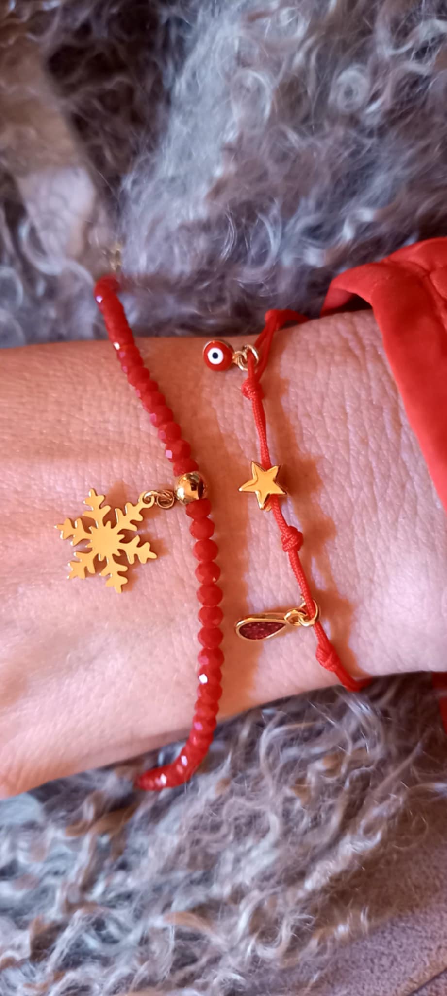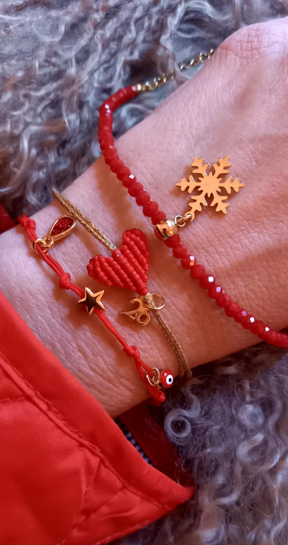 Βραχιόλι με κορδόνι σε κόκκινο χρώμα και κρεμαστά μοτίφ.