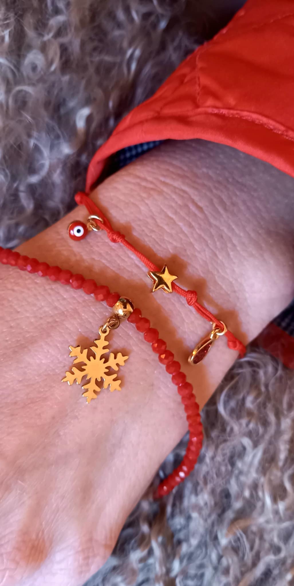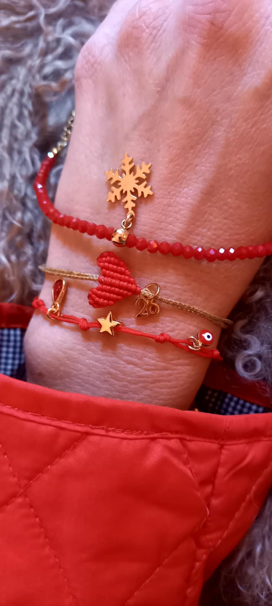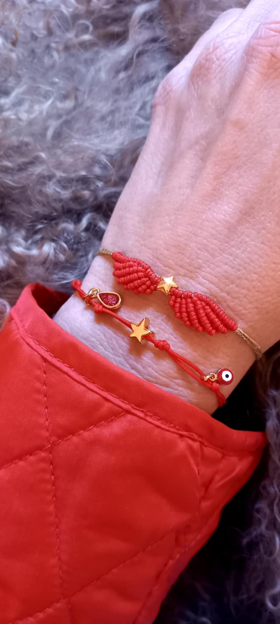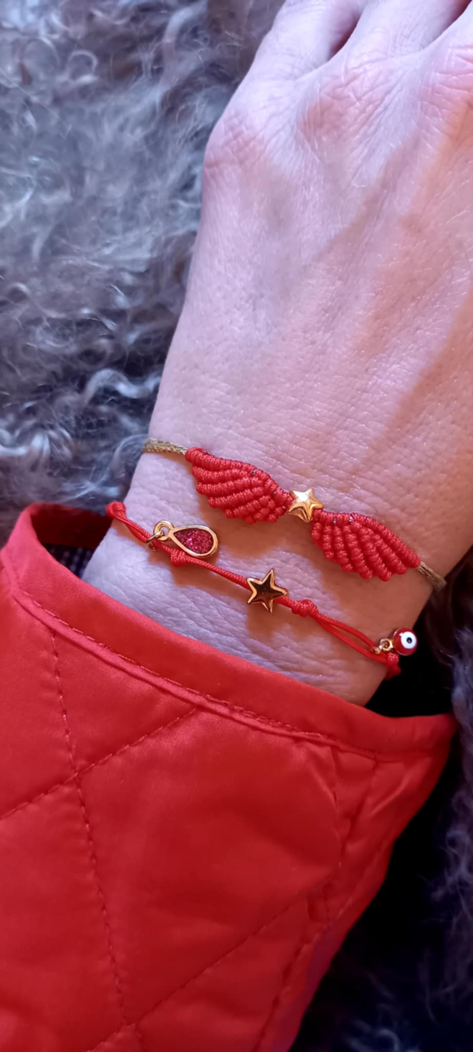 Βραχιόλι με κορδόνι σε κόκκινο χρώμα και κρεμαστά μοτίφ.