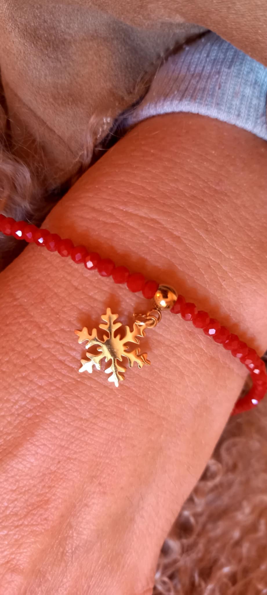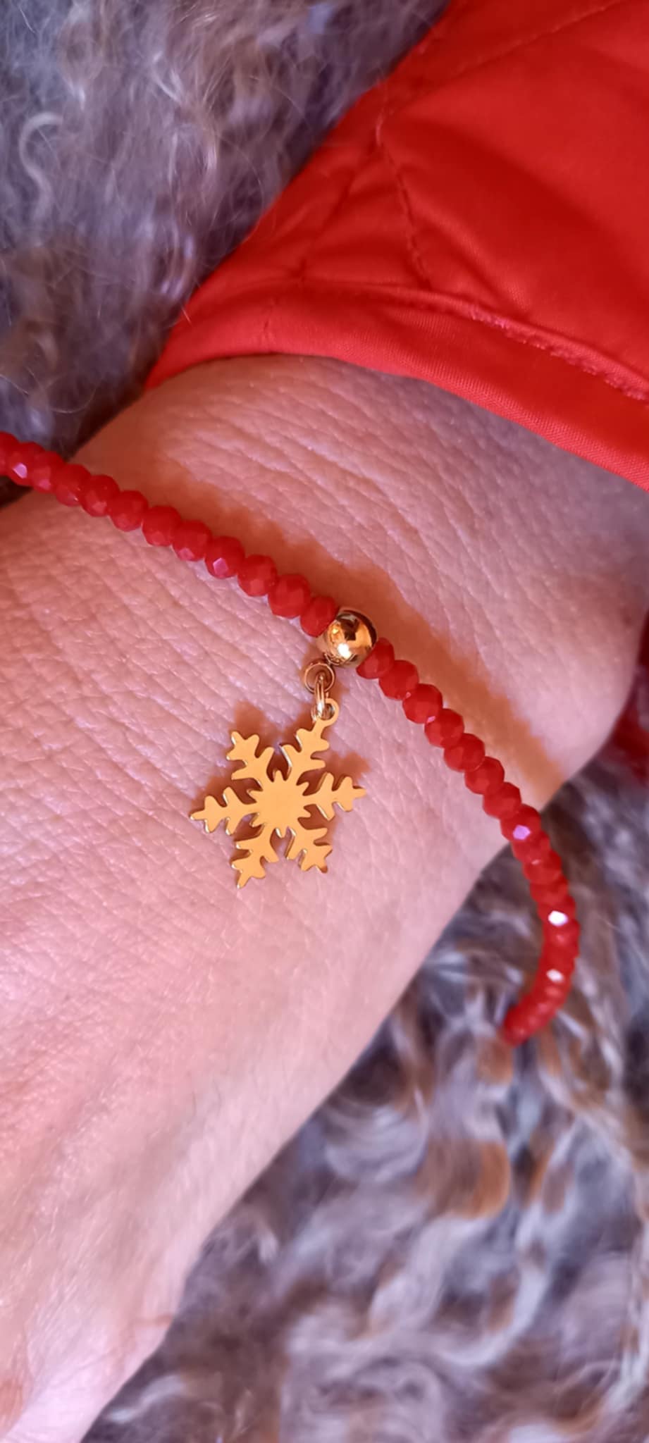 Βραχιόλι με κρύσταλλα σε λαμπερό κόκκινο χρώμα και ατσάλινο μοτίφ χιονονιφάδα.