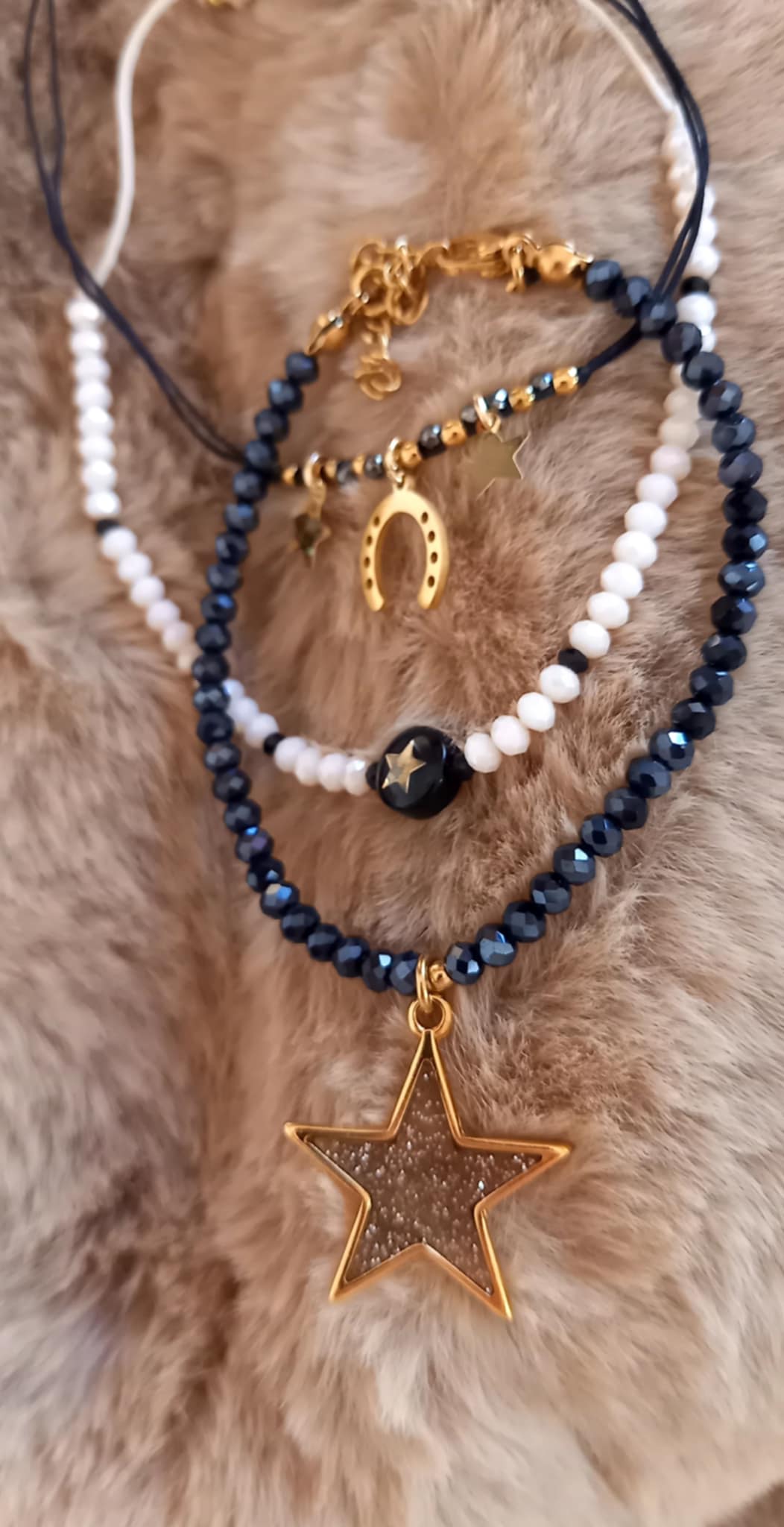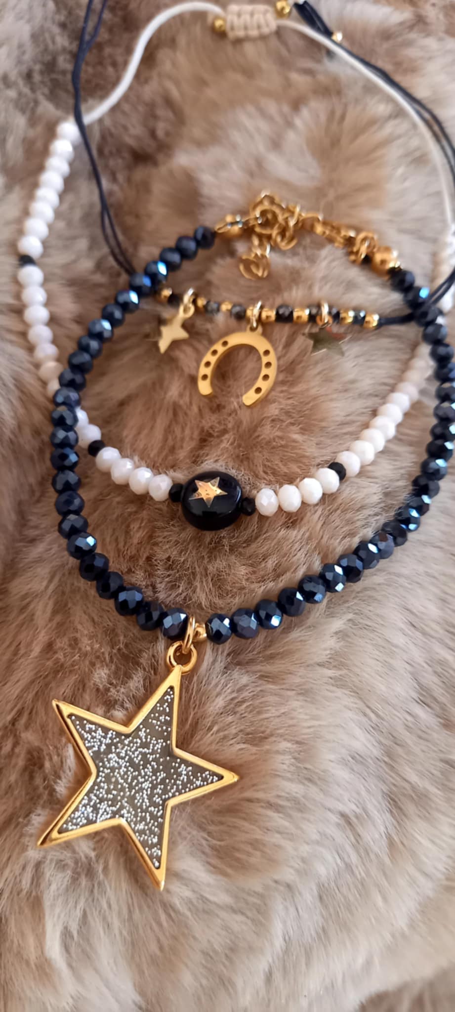 Εντυπωσιακό βραχιόλι με κρύσταλλα σε βαθύ μπλε χρώμα και μοτίφ αστέρι με λαμπερό φινίρισμα.