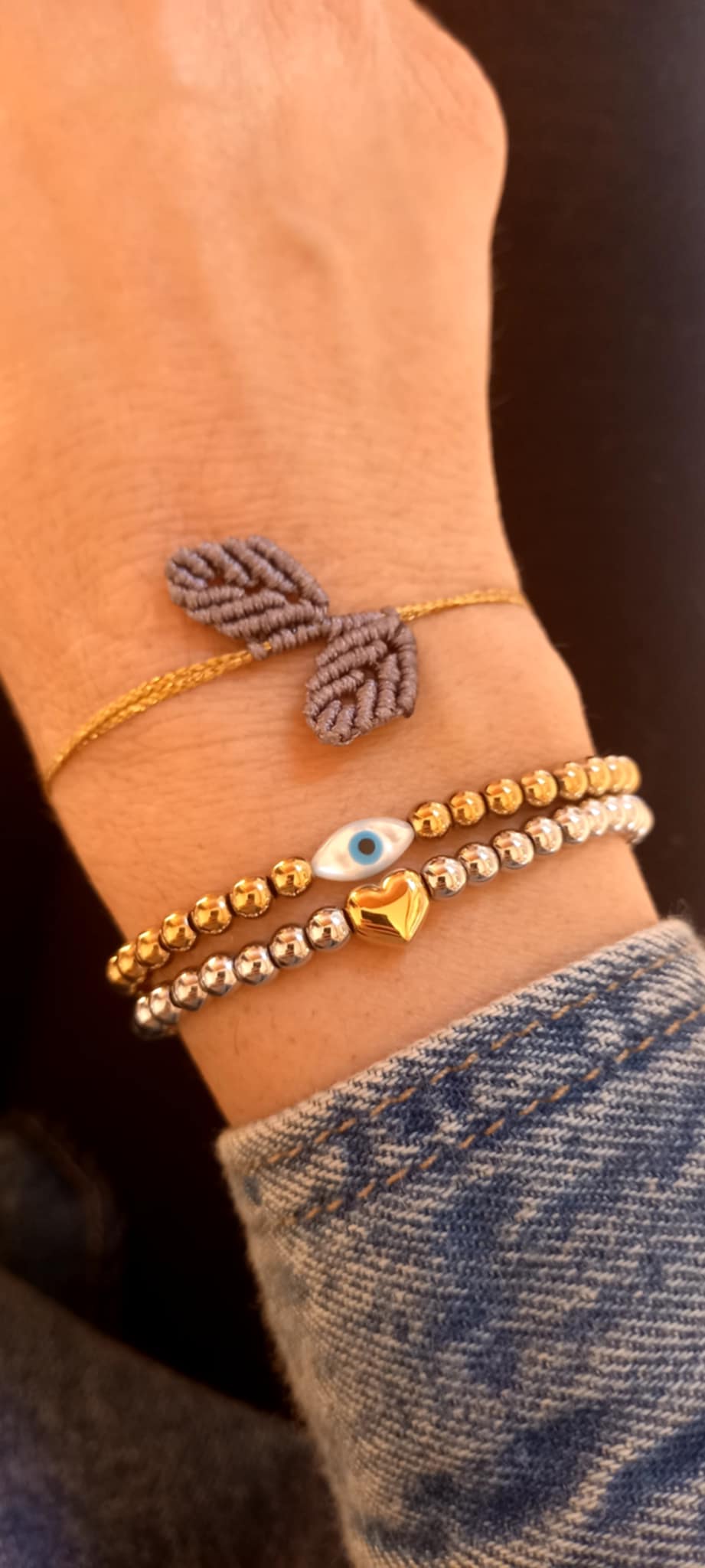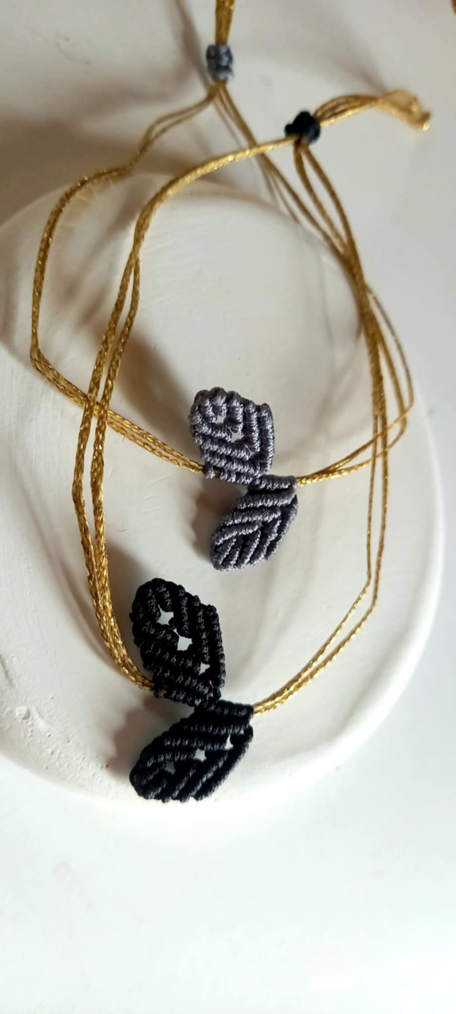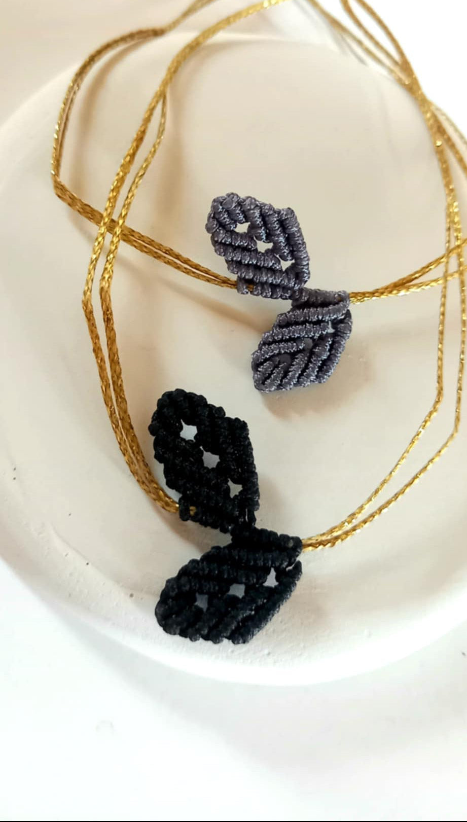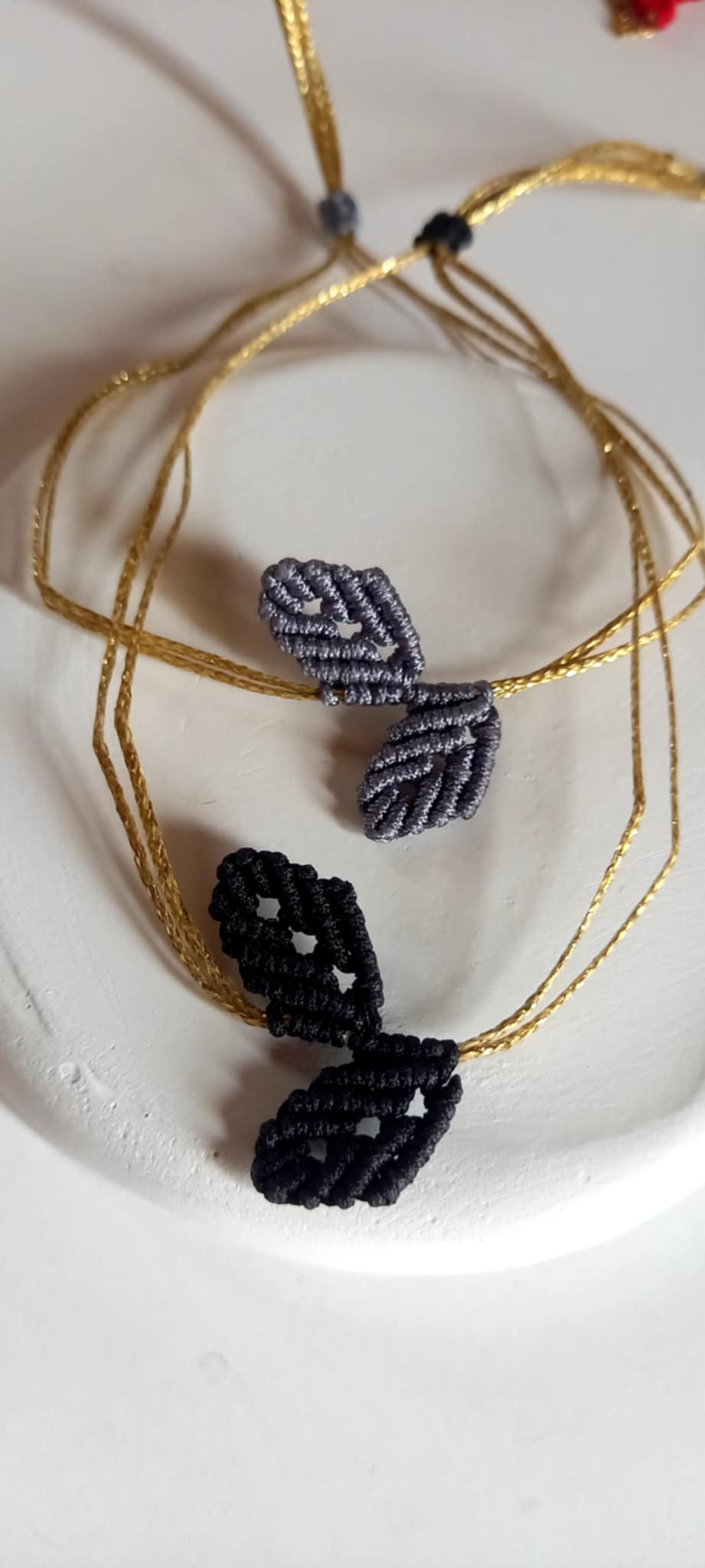 Χειροποίητο βραχιόλι με κερωμένο κορδόνι σε χρυσό χρώμα και μακραμέ διπλά φύλλα.